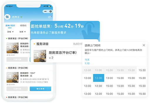 根据服务人员状态,在线抢单接受任务。实时预约