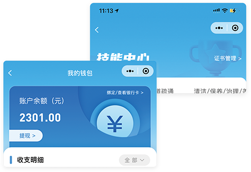 服务开始、结束,在线打卡,精准统计。技能提升